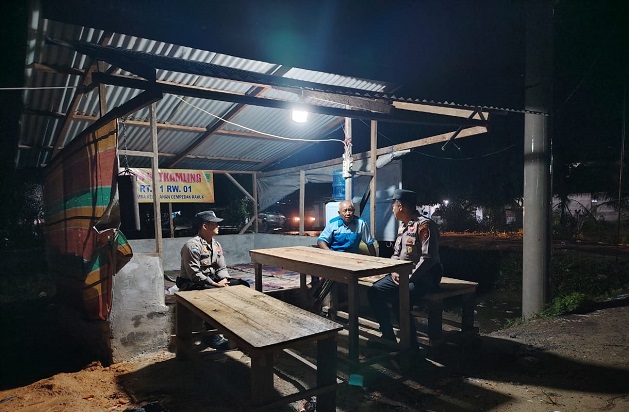 Patroli Malam Polsek Tanah Putih Sambangi Satkamling, Warga Diajak Aktif Jaga Kamtibmas