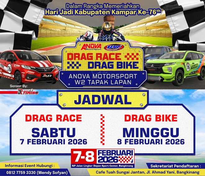 Drag Race dan Drag Bike Kembali Akan Digelar pada 7-8 Februari 2026 di Bangkinang Kota