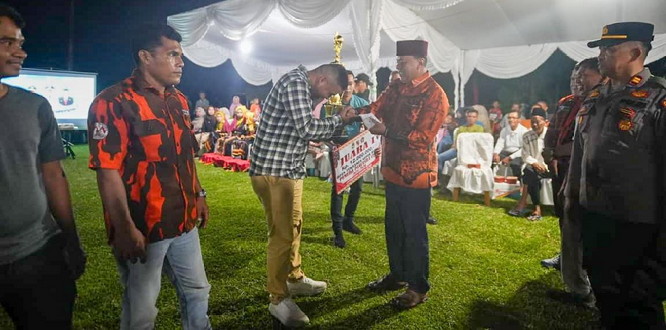 Bupati Kuantan Singingi, Dr. H. Suhardiman Amby, memberikan apresiasi atas keberhasilan panitia yang dinilai sukses menggelar Turnamen Sepakbola Pemuda Pancasila Cup Tahun 2025/26 dengan lancar dan meriah.
