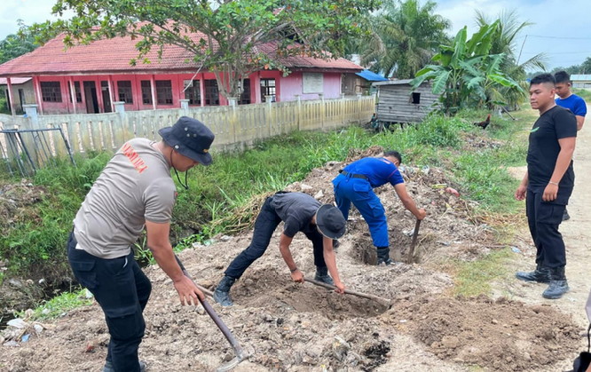 Kapolsek Tanah Putih Tinjau Progres Pembangunan Jembatan Merah Putih Presisi Putih SDN 014 Putat