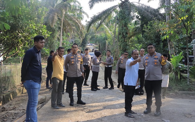 Pastikan Lancar, Kapolres Kampar AKBP Boby Tinjau Pembangunan Jembatan Lubuk Agung