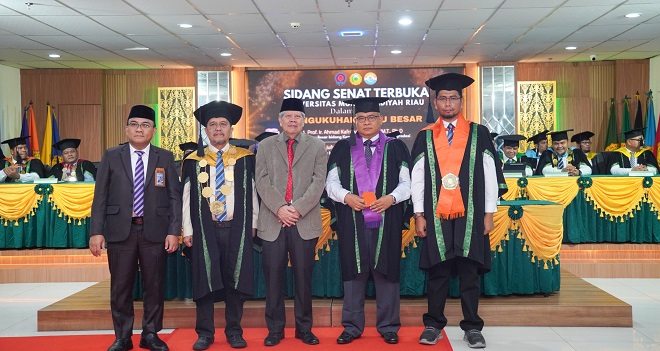 Riauterkini-PEKANBARU-Universitas Muhammadiyah Riau (Umri) menggelar Sidang Senat Terbuka dalam rangka pengukuhan Guru Besar pertama di Auditorium Kampus Utama Umri, Rabu (25/02/26).
