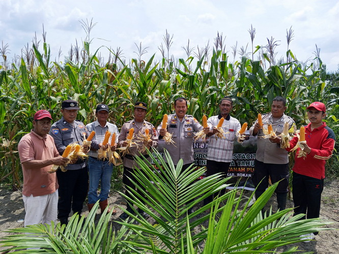Dukung Program Asta Cita Presiden, Polsek Tanah Putih Panen Jagung di Kepenghuluan Teluk Mega