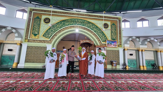 Polsek Tanah Putih Bagikan Bibit Pohon Program Green Policing Kapolda Riau Usai Salat Idul Fitri