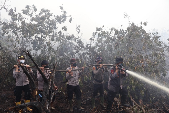 Kapolres Pelalawan Pimpin Langsung Upaya Pemadaman Karhutla di Teluk Meranti